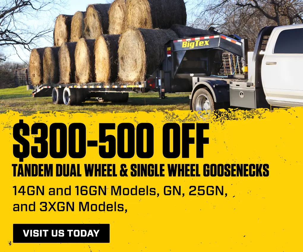 Get the strength and reliability you need to haul heavy loads with ease. Whether it's for your business or a personal project, a flatbed gooseneck or deck-over trailer from Big Tex Trailers gives you the durability and performance to transport cargo safely and efficiently.