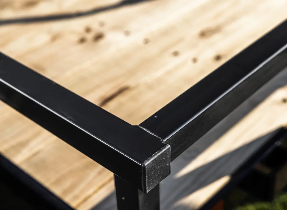 | Sides | 17" Tall Open sides with 3"x 2” Angle uprights and 2" x 2" Square Tubing Top Rail | 2' High Sides (Open, Total Height with Top Rail) 3’ High Sides (Open, total height with Top Rail) 4’ High Sides (Open, total height with Top Rail) Car Hauler Style (No Side Rails) Enclose Sides w/ Expanded Metal (Per Square Foot) Enclose Sides w/ Sheet Metal (Per Square Foot) |